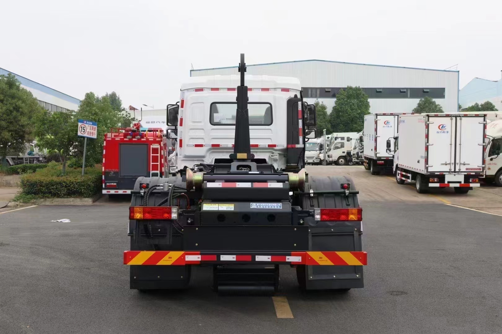 | 上裝配置 | 配套14-16方勾臂垃圾箱或移動站,主勾臂由高強度板材制作,雙油缸控制,伸縮式主臂,加強型上裝結構,液壓支腿,橫向鎖緊,品牌多路閥,進口柱塞泵,標配室內外操作(帶遙控),防誤操作,帶平衡閥,液壓鎖。 | ||