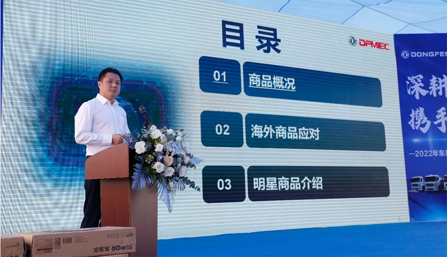 楊濤助理表示,中國(guó)東風(fēng)汽車工業(yè)出口有限公司是東風(fēng)汽車集團(tuán)有限公司的二級(jí)單位,是一家專業(yè)從事東風(fēng)集團(tuán)汽車出口、全球供應(yīng)鏈服務(wù)、工業(yè)投資的外貿(mào)公司。2021年?yáng)|風(fēng)的海外事業(yè)取得了亮眼的成績(jī),海外出口車輛(含成套散件)15.4萬(wàn)輛,同比增長(zhǎng)了1.2倍,創(chuàng)造了歷史最高紀(jì)錄;2022年將沖刺挑戰(zhàn)20萬(wàn)輛的銷售目標(biāo),借此推薦會(huì)的機(jī)遇,希望程力和隨州的銷售經(jīng)理,能夠搭上東風(fēng)海外事業(yè)發(fā)展的快速列車,共創(chuàng)新業(yè)績(jī)新輝煌。