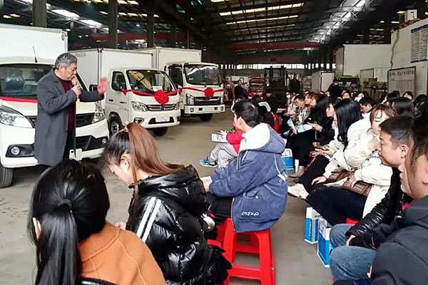 8月18日上午,在汽車(chē)公司高端灑水車(chē)車(chē)間內(nèi),由生產(chǎn)部和技術(shù)部負(fù)責(zé)人、廠(chǎng)長(zhǎng)從各自工作方面向生產(chǎn)員工和部分后勤員工進(jìn)行講解,目的從安全生產(chǎn)、產(chǎn)品結(jié)構(gòu)、公告型號(hào)、技能指導(dǎo)、識(shí)圖看圖、設(shè)備操作等全方位進(jìn)行教育提高。
